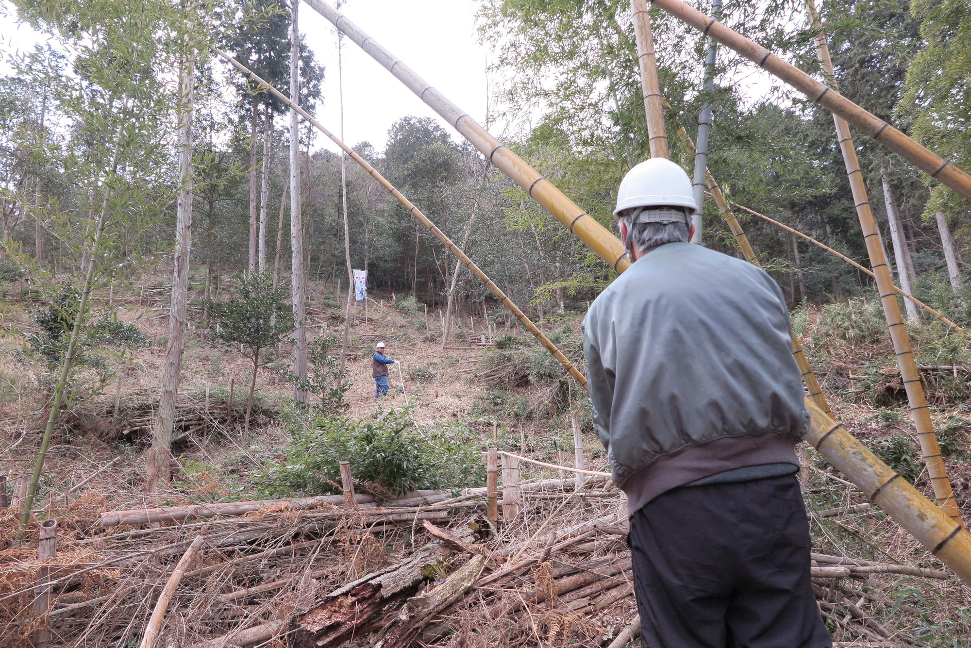 1メートルの高さで竹を刈る